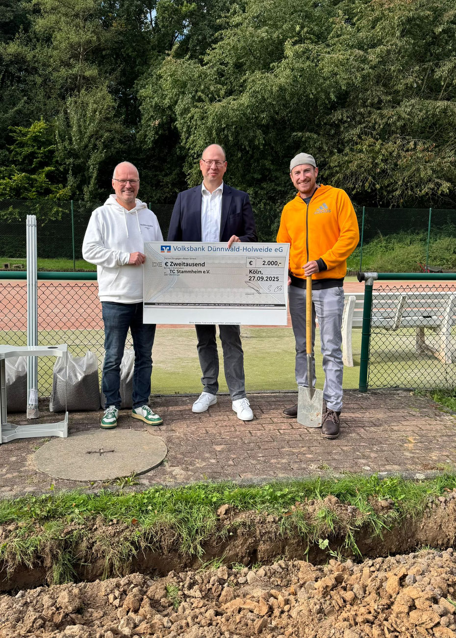 Der Tennis Club Köln Stammheim bedankt sich herzlich bei der Volksbank Dünnwald-Holweide eG für den großzügigen Spendenscheck.